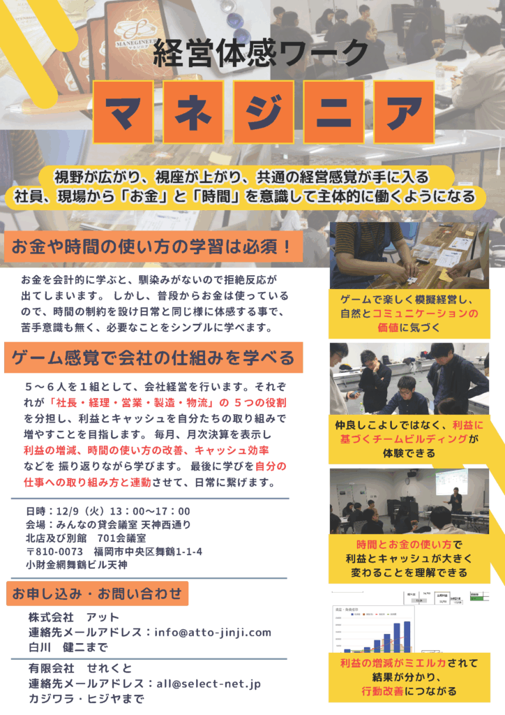 ホーム » お知らせ » 【2025/12/09開催】マネジニア|経営について実感しながら学べるワークショップ